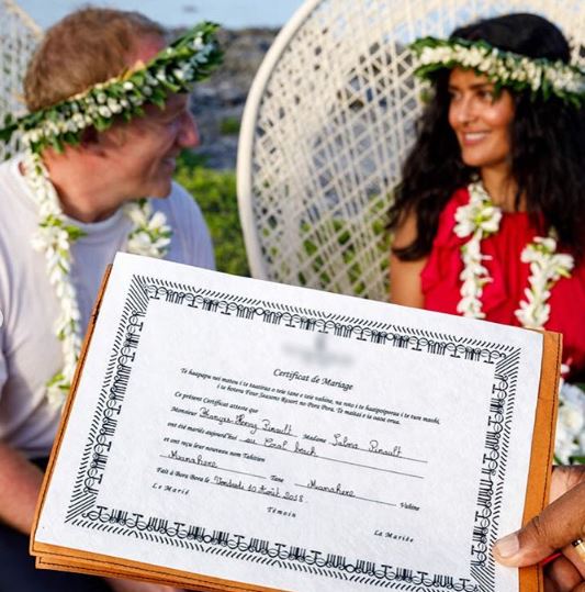 ¡Una boda al estilo tahitiano! Salma y su marido, François-Henri Pinault, han renovado sus votos matrimoniales en un escenario de ensueño, rodeados por el agua cristalina, la arena blanca y la vegetación salvaje de la Polinesia Francesa.