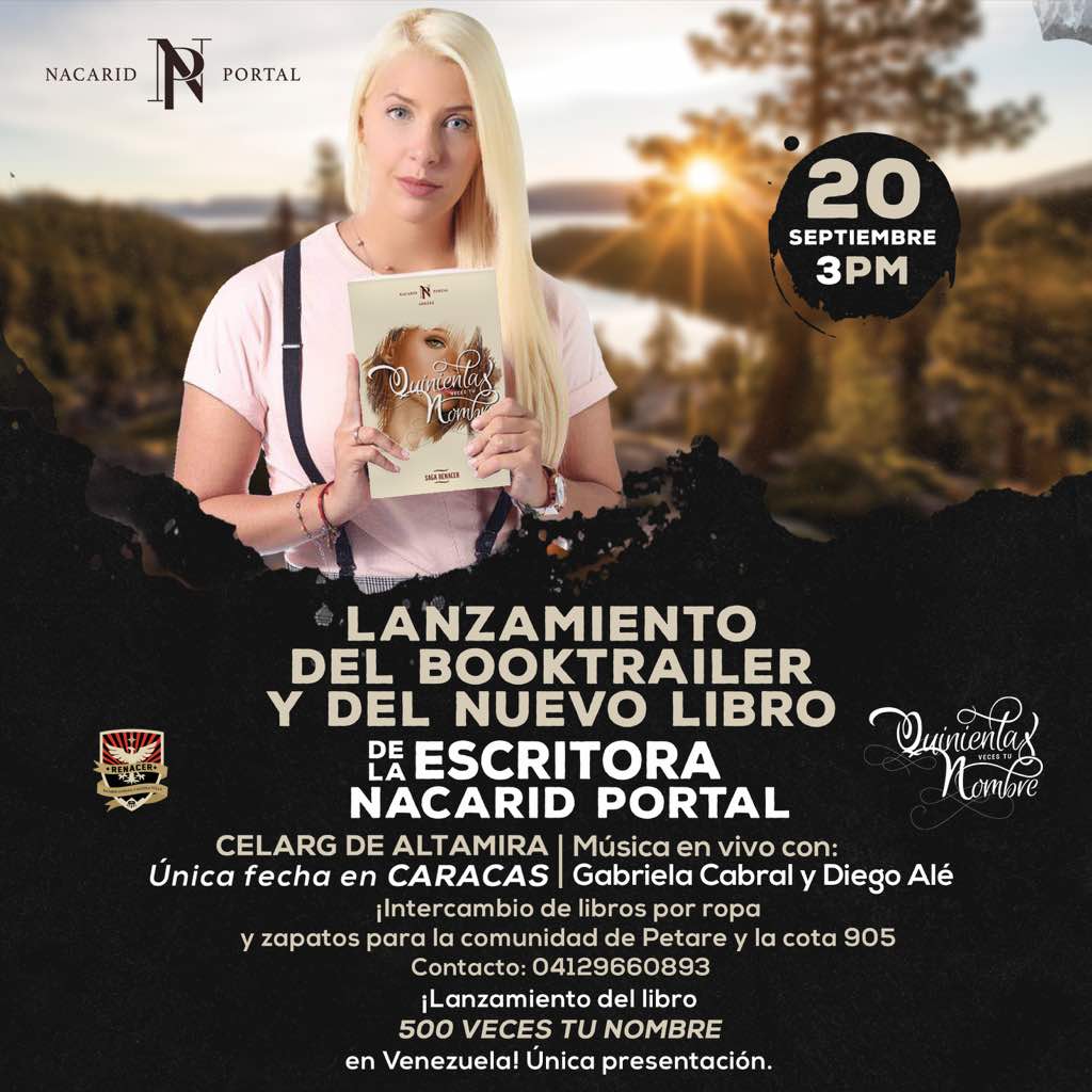 El próximo jueves, 20 de septiembre de 2018, la autora del best seller internacional “Amor a cuatro estaciones”, presentará su nuevo libro titulado “Quinientas veces tu nombre”, en un evento benéfico para apoyar a las comunidades de Ciudad Bolívar, la Cota 905 y Petare. La cita será en la sede del Celarg (Altamira – Caracas), en la sala 1.