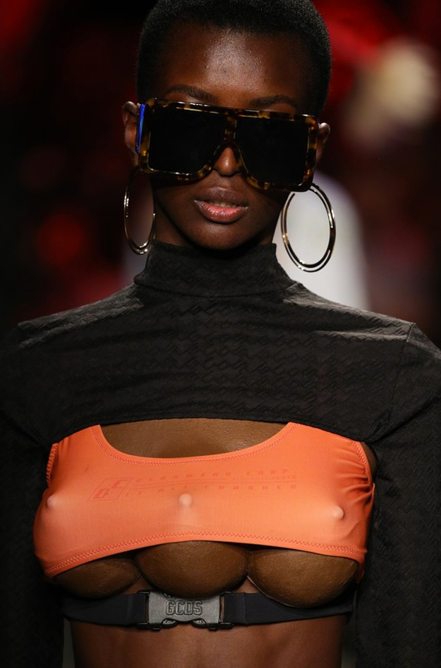 La firma italiana GCDS revolucionó la pasarela durante la Semana de la Moda en Milán, después de que dos de sus modelos desfilaran con prendas que dejaban al descubierto sus tres senos.