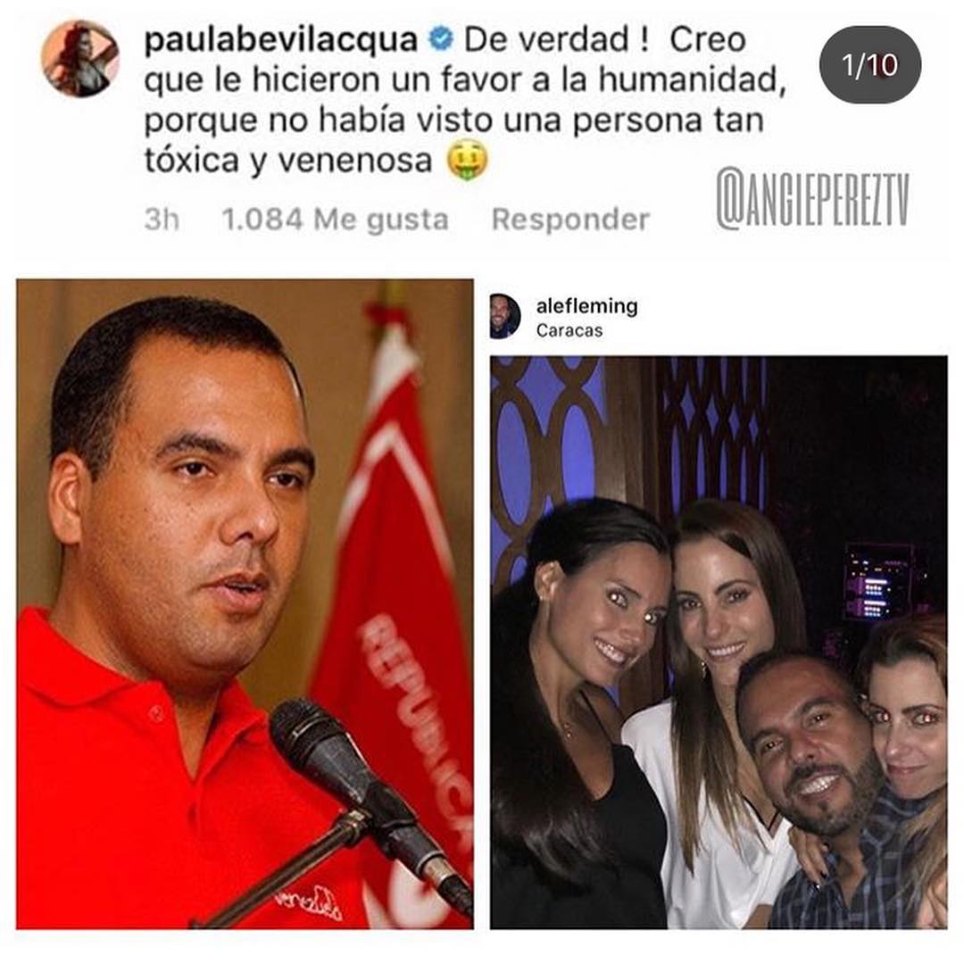 La polémica actriz venezolana Paula Bevilacqua y su esposo Cristóbal Lander, siguen dando de qué hablar. En esta oportunidad, la periodista Angie Perez difundió una serie de fotografías donde aparece la pareja de artistas rumbeando con un grupo de amigos, entre ellos Alejandro Fleming, ex presidente de Centro Nacional de Comercio Exterior (CENCOEX), por lo que es considerado chavista u enchufado. La reacción de sus seguidores no fue nada favorable, los actores recibieron múltiples criticas en sus redes sociales.