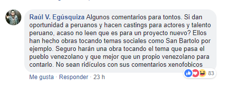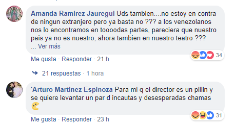 El anunció hecho por el grupo teatral acumulo cientos de comentarios de usuarios de la red peruanos acusando a los venezolanos de robarles su trabajo, mientras que otros fueron cuestionados sobre por qué no buscaban actores del Perú. Unos otros defendieron la propuesta asegurando que se trataba de un nuevo proyecto.