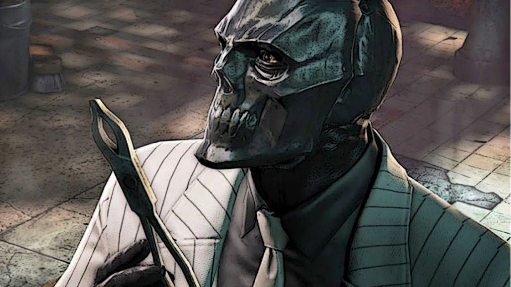 También conocido como Roman Sionis, Máscara Negra es un jefe de la mafia de Gotham City que lidera la Sociedad de Caras Falsas. En los cómics, el personaje mató a sus padres ricos para tomar el control de su empresa, pero era un hombre de negocios de lo más inútil y terminó perdiéndolo todo. Él culpa a otros de todos sus males, con Bruce Wayne como uno de sus principales objetivos. Máscara Negra suele llevar al menos dos pistolas automáticas y ha utilizado una espada en varios cómics, siendo un experto combatiente cuerpo a cuerpo.