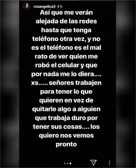 «Señores trabajen para tener lo que quieren en vez de quitarle algo a alguien que trabaja duro por tener sus cosas. Los quiero. Nos vemos pronto» reiteró en sus historias.