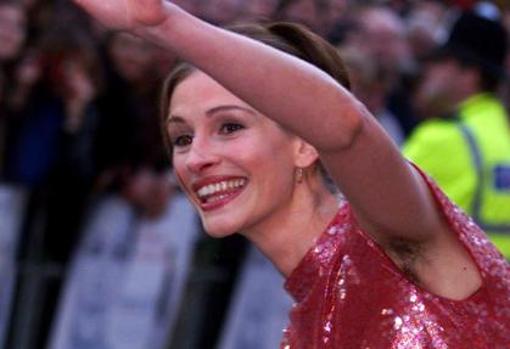 En su momento, la imagen de Julia Roberts con el brazo levantado y con pelos en las axilas dio la vuelta al mundo. Eran otros tiempos. Corría el año 1999 cuando la afamada actriz apareció en la alfombra roja de la presentación de la película Notting Hill en Londres con un vestido rojo de lentejuelas de manga corta que dejó al descubierto su vello.