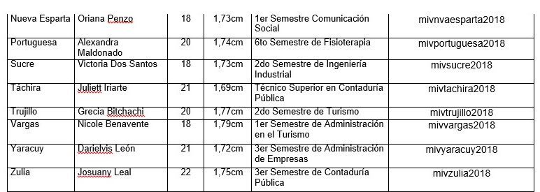 Conseguirlas en esta red social es muy sencillo, solo debes colocar en el buscador las iniciales del certamen, seguido del estado y el año 2018 (mivlara2018). Sin embargo, hay entidades que fueron abreviadas, para comodidad de los internautas.