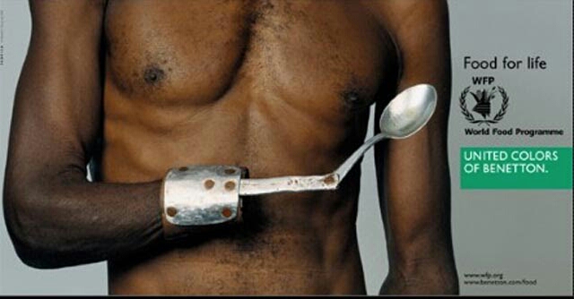 2) Hambre de inclusión. Durante 2003, en su campaña “Food for Life”, optaron por retratar a un hombre con un brazo mutilado. Su prótesis metálica es una cuchara