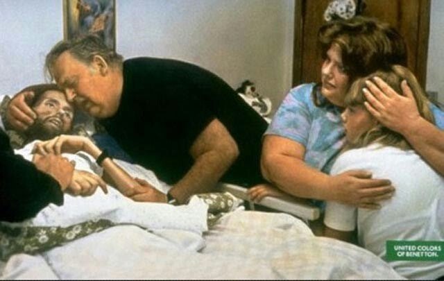 5) S.O.S el Sida asecha. Esta foto, tomada por David Kirby en un mayo de 1990, le valió el World Press Photo Award en 1991. Benetton la usó en su publicidad para concienciar sobre las muertes causadas por el virus, al atraer consigo la atención mediática del mundo.