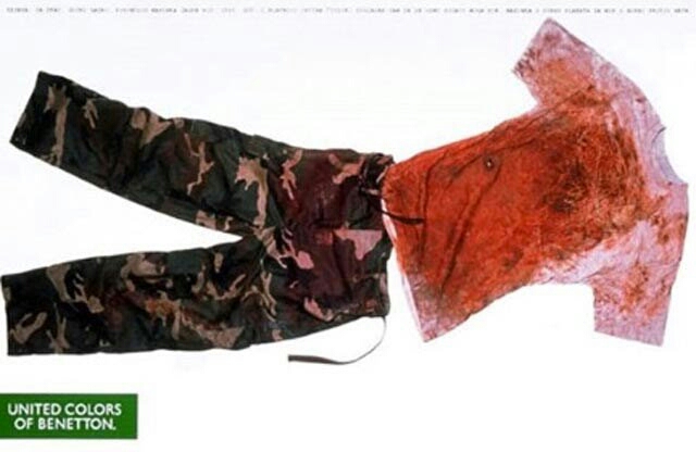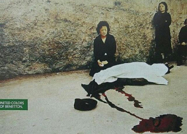 4) ¡Bang bang, soy la mafia!. Para su campaña de 1992 aprovecharon una gráfica de un asesinato de la mafia suscitado 10 años antes en Palermo, Italia. La hija del occiso, amenazó con demandar a Benetton preguntándose, “¿Cómo la muerte de mi padre puede entrar en la publicidad para unos suéteres?”.