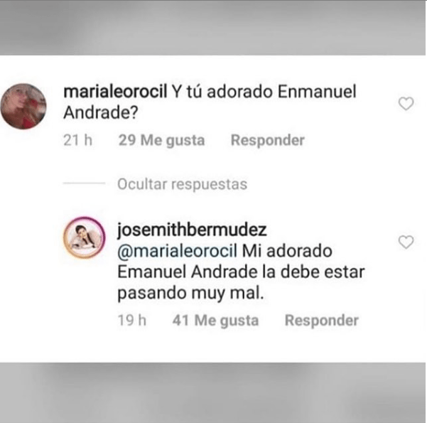 “Mi adorado Emanuel Andrade la debe de estar pasando muy mal”, respondió Josemith Bermudez.