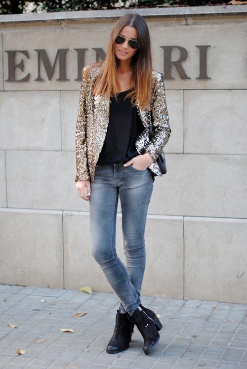 Y si tu plan es algo más informal, ¡Adelante! Usa tus jeans favoritos, y combínalos con un top de lentejuelas, o un blazer femenino. Aprovecha para tener pequeños detalles que muestren el amor que le pusiste a la ocasión.