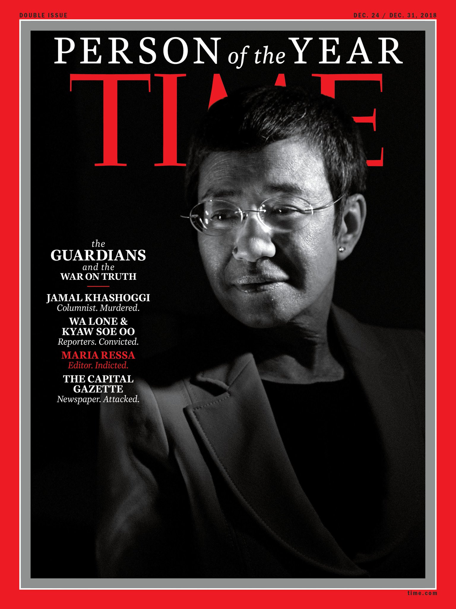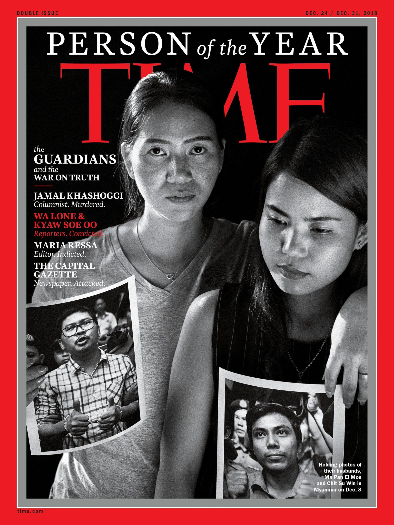 En esta oportunidad, los Personajes del año son los periodistas conocidos como los «Guardianes de la verdad»; grupo que incluye a la editora filipina Maria Ressa, a los birmanos encarcelados Wa Lone y Kyaw Soe Oo , al personal de Capital Gazette, quienes fueron blanco de la violencia con armas de fuego, y al periodista saudí Jamal Khashoggi, quien fue brutalmente asesinado hace apenas unas semanas.