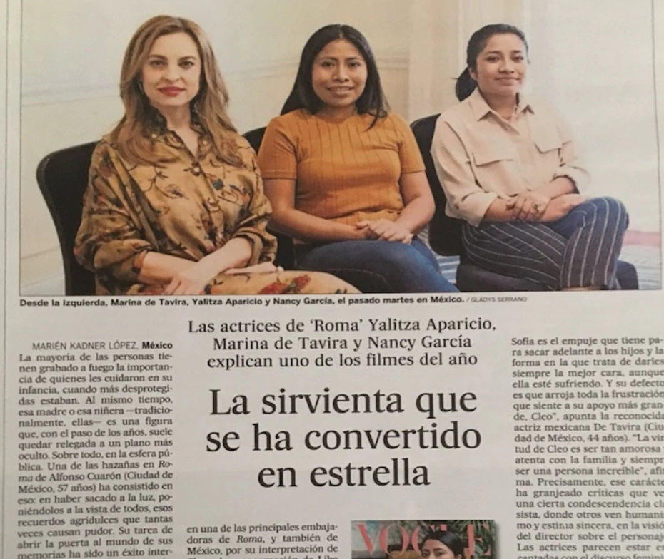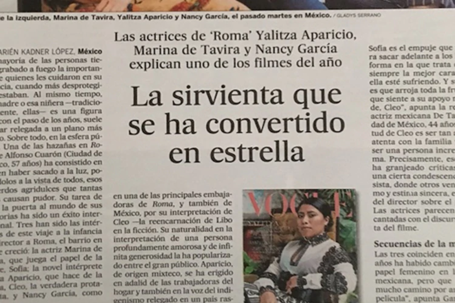 Aparicio ha sido entrevistada en los programas de televisión más importantes del continente y también el algunos medios de Europa, sin embargo, hasta ahora no había generado tanta polémica por sus entrevistas – donde había sido tratada de manera muy cordial-, El País de España, ha sido duramente criticado por una de sus notas donde señaló a Yalitzia, como «sirvienta». La publicación fue titulada: «La sirvienta que se ha convertido en estrella».
