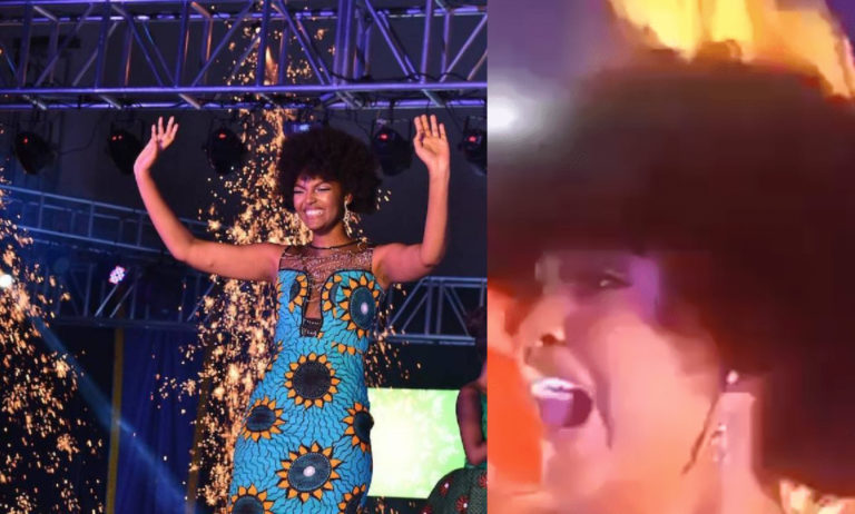 Tras anunciar su nombre como la gran ganadora, Kasinde dio unos cuantos pasos y se ubicó demasiado cerca de los efectos pirotécnicos en el escenario. Mientras abrazaba a su compañera, quedó registrado en videos cómo el cabello de Dorcas, comenzó a incendiarse, acto seguido el personal acudió a socorrerla.
