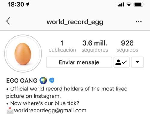 El pasado 4 de enero, la cuenta @world_record_egg publicó la imagen de un huevo posando frente a un fondo blanco, con la leyenda: “Rompamos un récord mundial todos juntos y consigamos la publicación con más likes en la historia de Instagram. Rompiendo el actual récord mundial obtenido por Kylie Jenner (¡18 millones!)”.