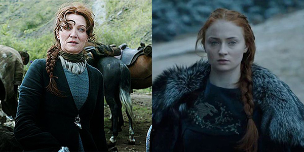 Entre teoría y teoría, muchos han puesto su atención en el peinado de Sansa Stark. Durante toda la serie, el personaje interpretado por Sophie Turner ha cambiado constantemente de look. A través de los siete de los episodios, la hermana de Jon Snow ha ido tomando como modelo a aquellas mujeres a las que admiraba, y eso lo ha trasladado al estilo de su peinado. Lo hemos podido ver desde la primera temporada con Cersei Lannister y, posteriormente, con Margaery Tyrell o con su propia madre, Catelyn Stark.