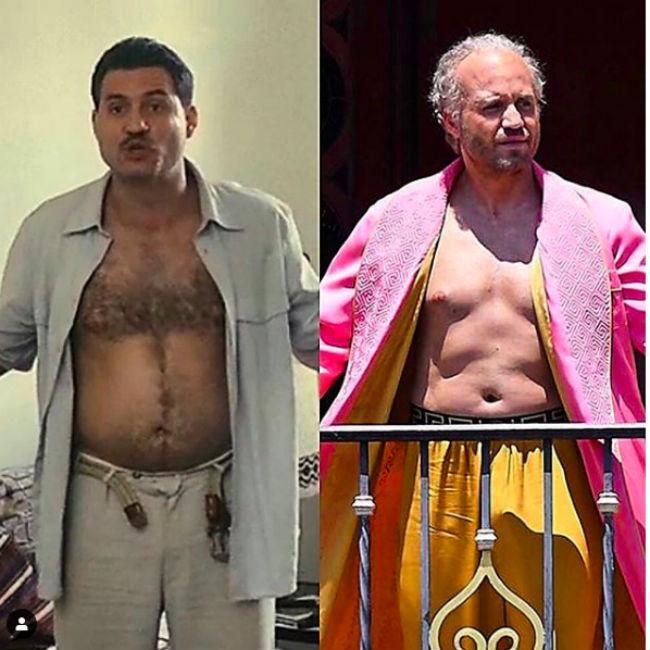 «Muchísimo mejor gusto en ropa… ¿verdad? ¿Peludo o lampiño? #Carlos o #Versace», escribió el actor junto al collage de la comparación.