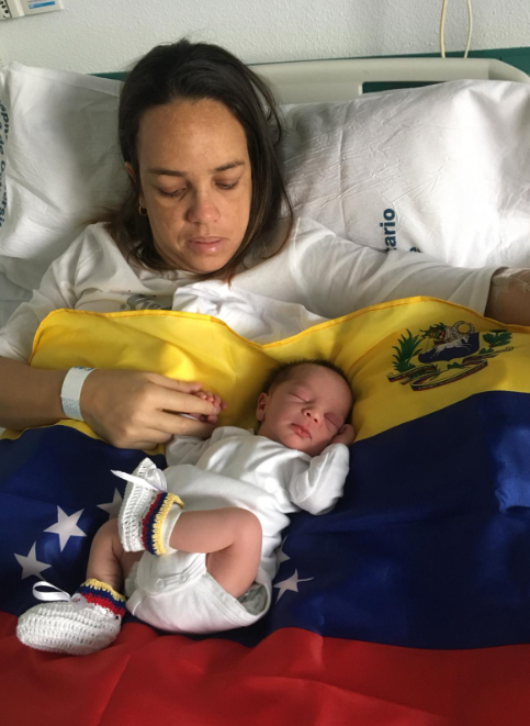 Su familia tuvo que huir del país en busca en un nuevo futuro y justamente este 23 de enero le dieron la bienvenida a un nuevo miembro de la familia, Alan Lander, quien fue vestido con los colores de la bandera venezolana por su madre.