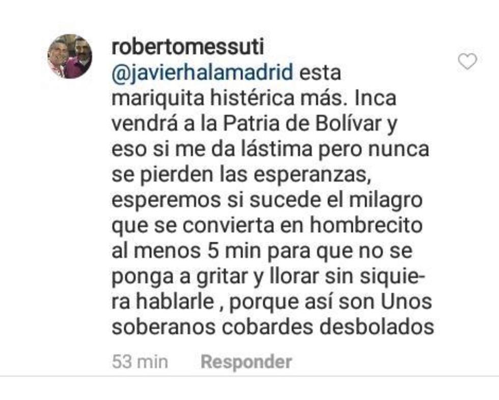 Hace poco, te habíamos mostrado el incoherente chiste que utilizó para criticar la juramentación de Guaidó, y al parecer, sigue siendo incoherente con sus expresiones, pues ahora a lanzado una amenaza incoherente al influencer y comediante venezolano, Javier Romero, mejor conocido cómo JavierHalaMadrid.