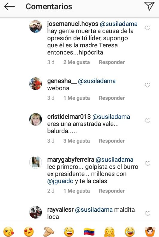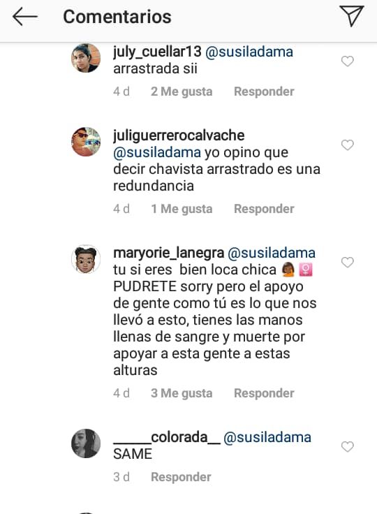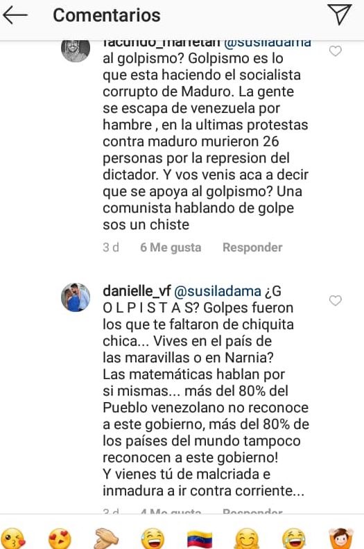 Sin embargo, hubo comentario en particular que disgustó a sus seguidores, sobre todos a los venezolanos. El comentario en cuestión, fue emitido por una venezolana, la cual -aparentemente- apoya al régimen venezolano, ya que acusó a Balvin de apoyar al golpismo en Venezuela.