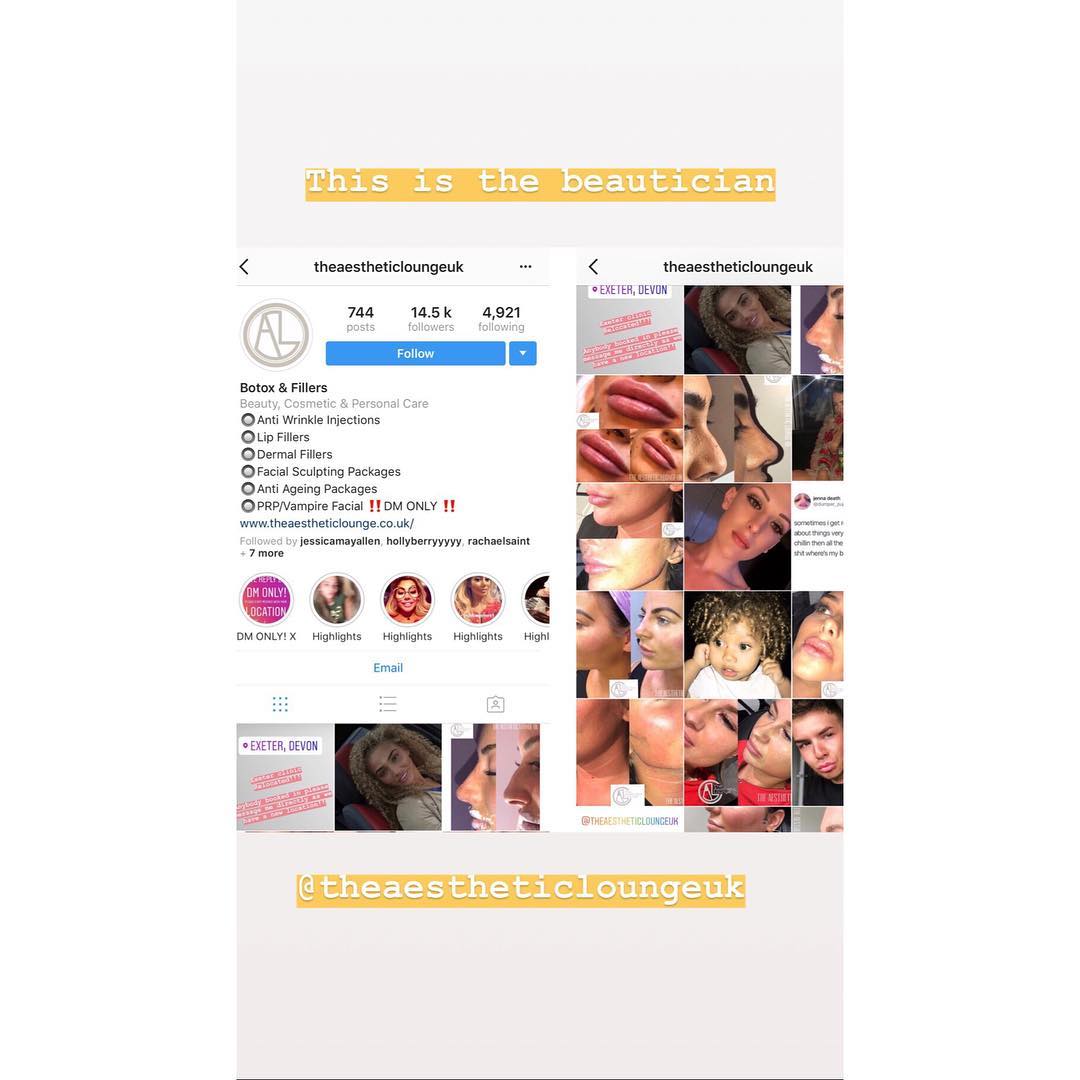 La joven compartió mediante su cuenta de Instagram el nombre del centro estético y la identidad de la persona que le inyectó los labios.