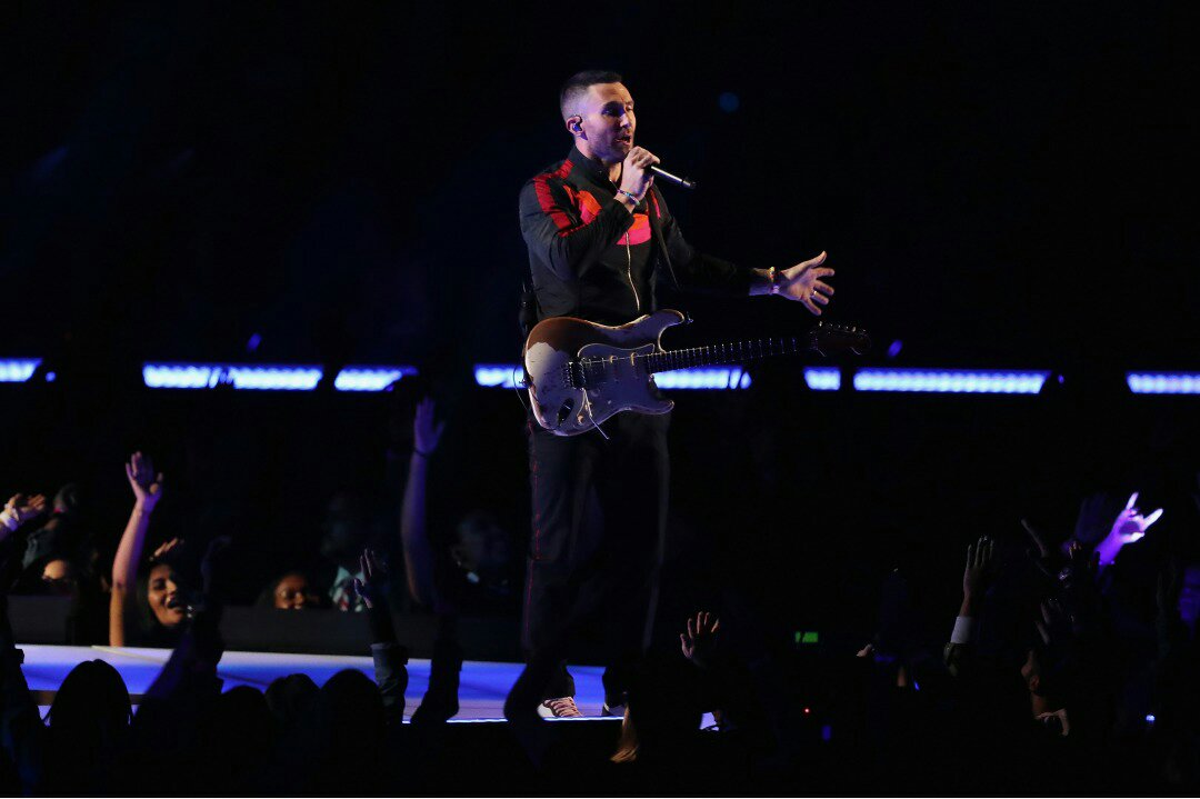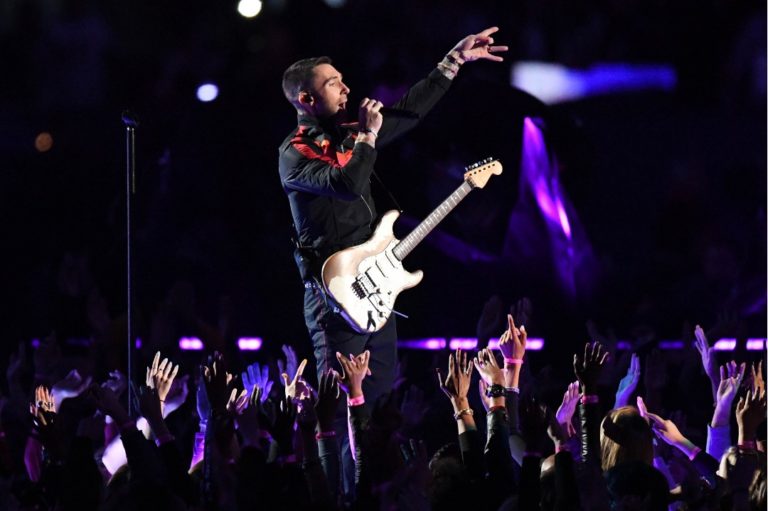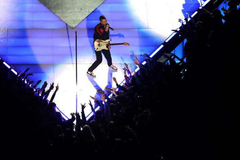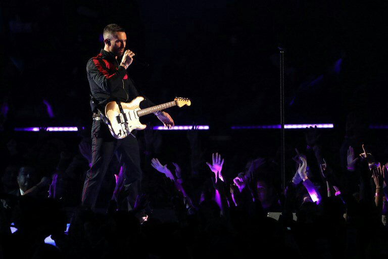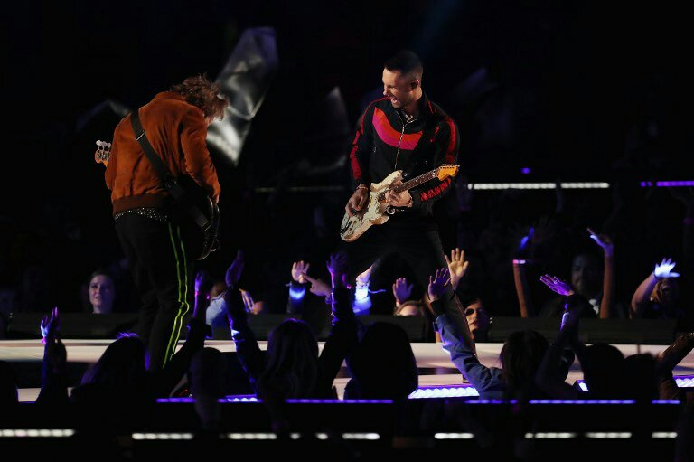 La banda liderada por Adam Levine se presentó en el entretiempo de la final entre los equipos los Angeles Rams y New England Patriots.