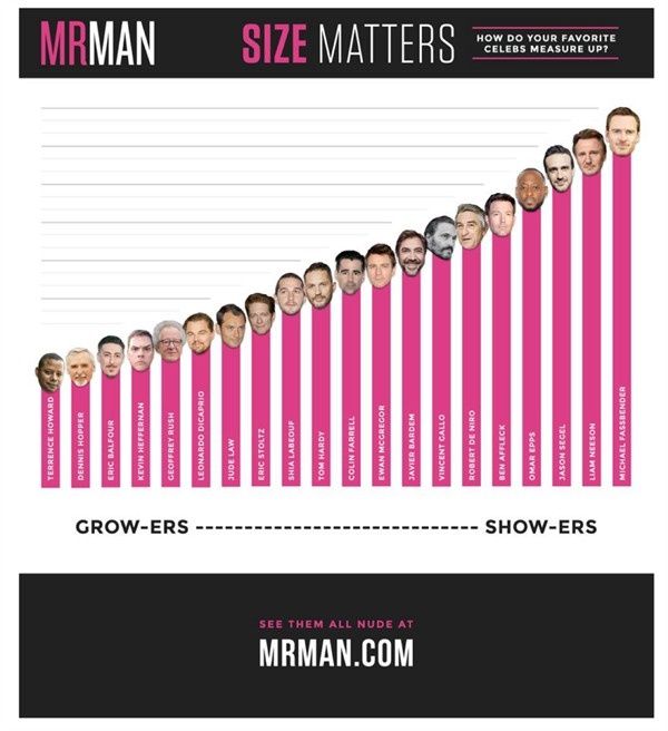 Dicen que el tamaño no importa, pero para el sitio Mr. Man eso parece ser un mito, ya que decidió hacer un listado en el que detalla quién está mejor dotado de los actores de Hollywood.