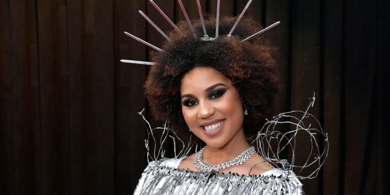En la alfombra roja de los Grammy siempre encuentras extravagantes looks. Esta no fue la excepción con la aparición de la cantante Joy Villa vestida como el muro que Donald Trump quiere construir.
