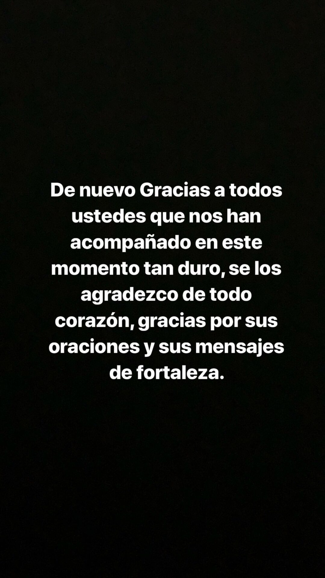 Posterior a esto, le envió un mensaje de agradecimiento a todos los fanáticos del cantante que la ha acompañado en este trágico momento.