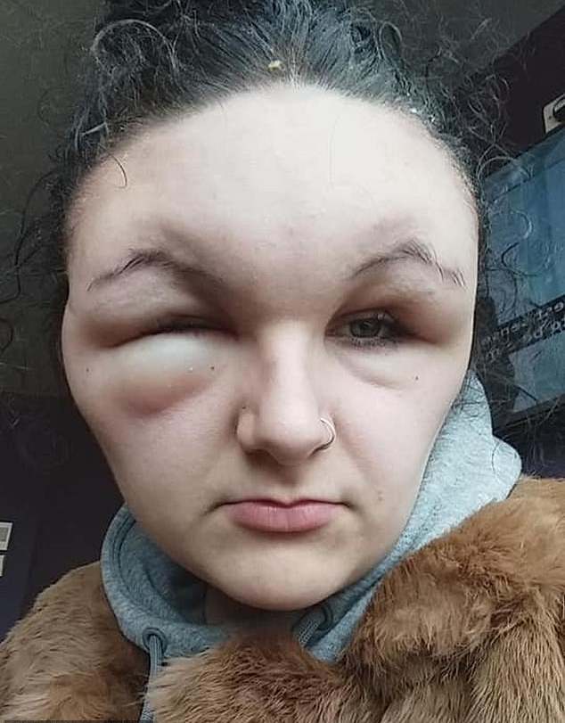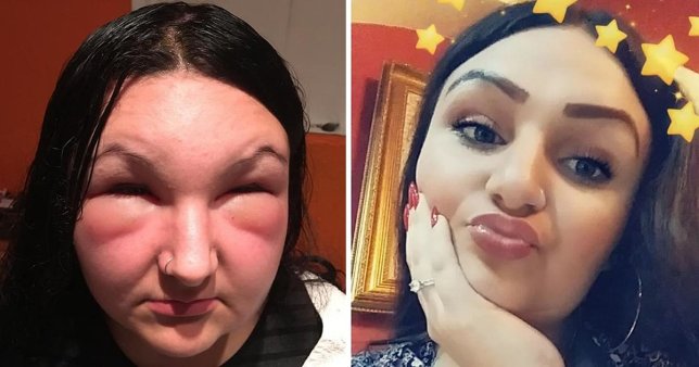 La joven le comentó al Daily Mail que mientras estaba en una cena romántica con su novio, ella comenzó a sentir que su cabeza estaba muy caliente y que, además, le picaba. Días después, la joven fue al médico al notar que su cara se ensanchaba progresivamente y que le estaban saliendo ampollas en su cuerpo.