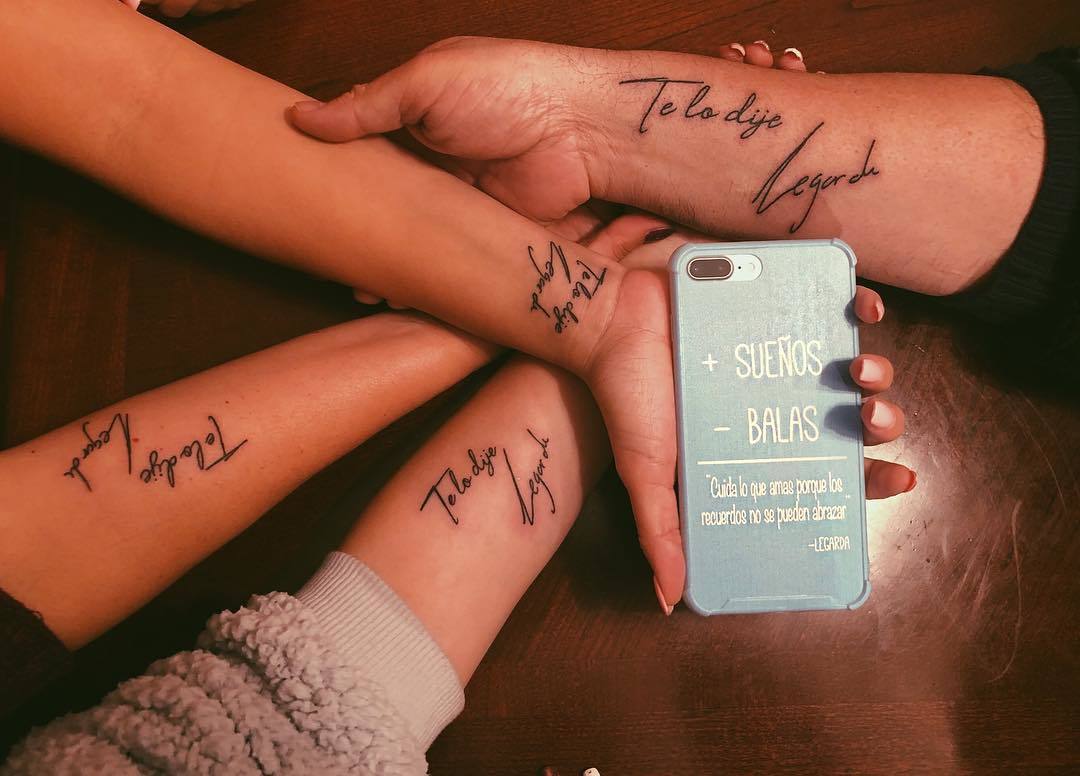 Recientemente la familia decidió inmortalizar en su piel un recuerdo que llevarán por siempre del cantante.