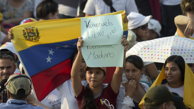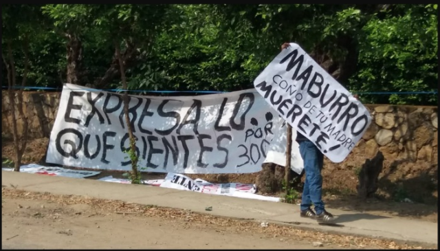 Algunos no perdieron la oportunidad de mostrar su rechazo a Nicolás Maduro, quien algunos consideran usurpador del cargo de Presidente de Venezuela. “No más muertes, fuera Maduro”, y “Venezuela libre”, son algunos de los mensajes que se leen en pancartas alzadas en medio de la multitud que ahora se congrega a los alrededores de la tarima.
