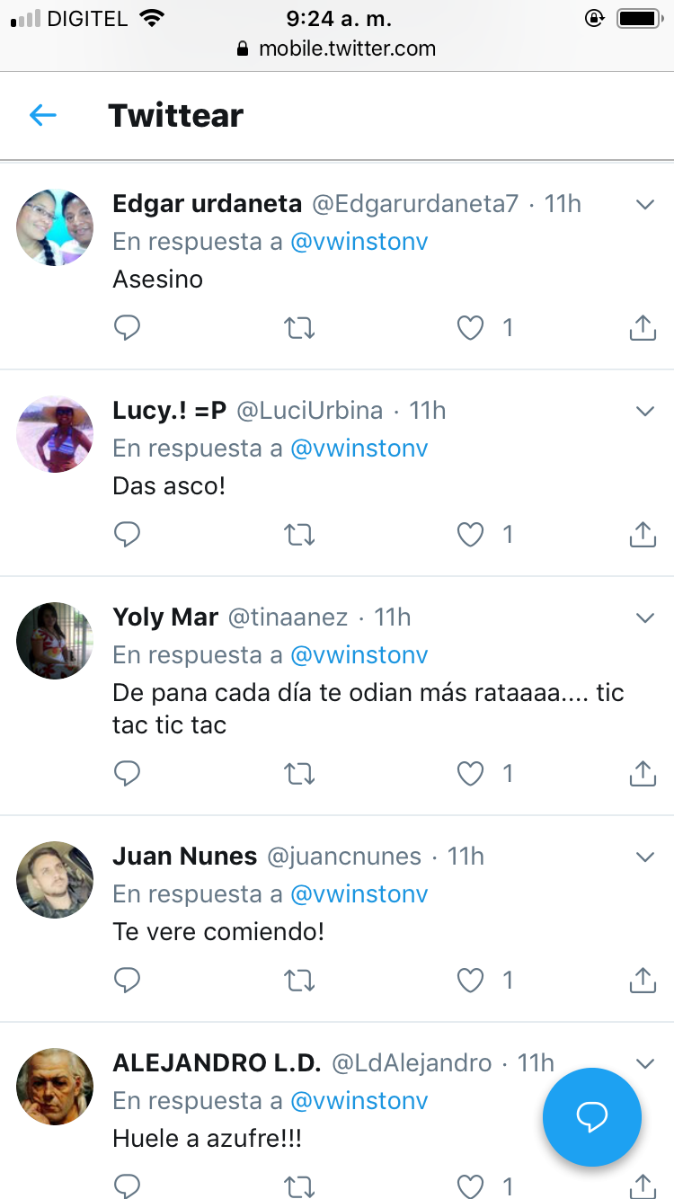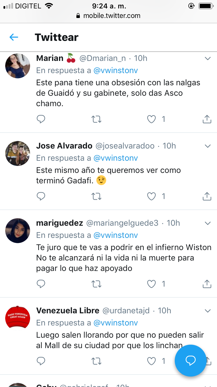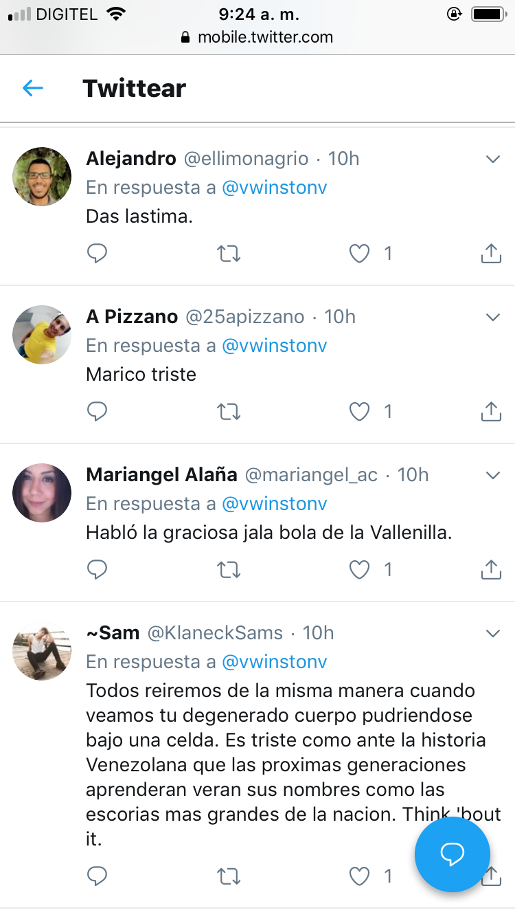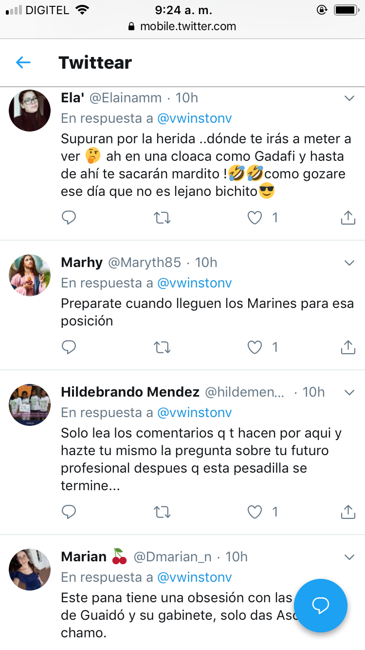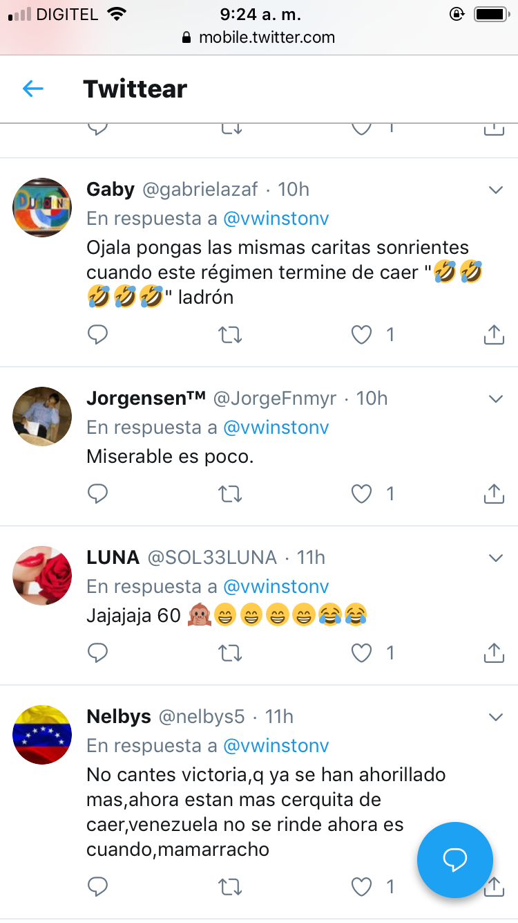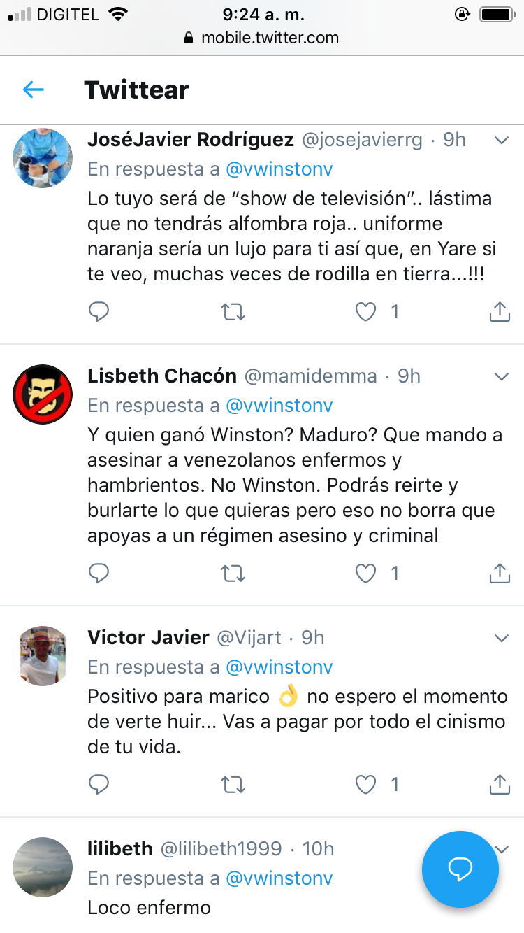 A continuación, algunos de los mensajes que recibió Winston por burlarse del presidente interino Juean Guaidó: