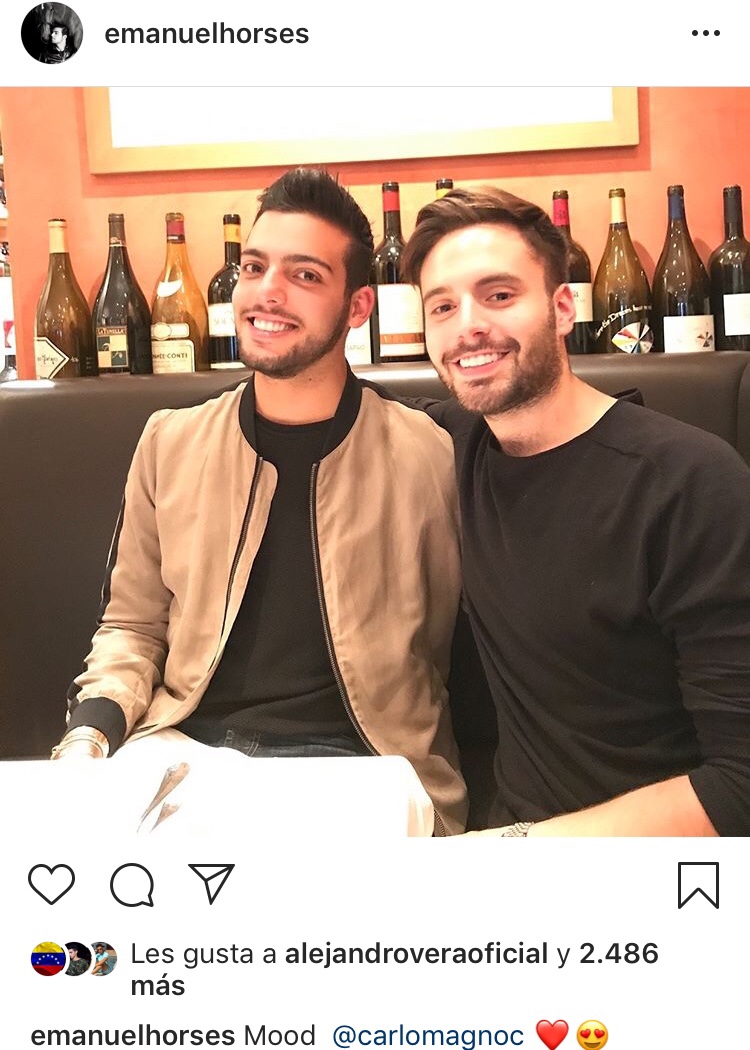 Asimismo, Emanuel Andrade compartió una fotografía junto a su pareja Carlo Magno, con quien disfrutó de una romántica cena en lo que parece ser, a juzgar por el pie de foto, una celebración de pareja.