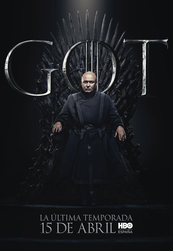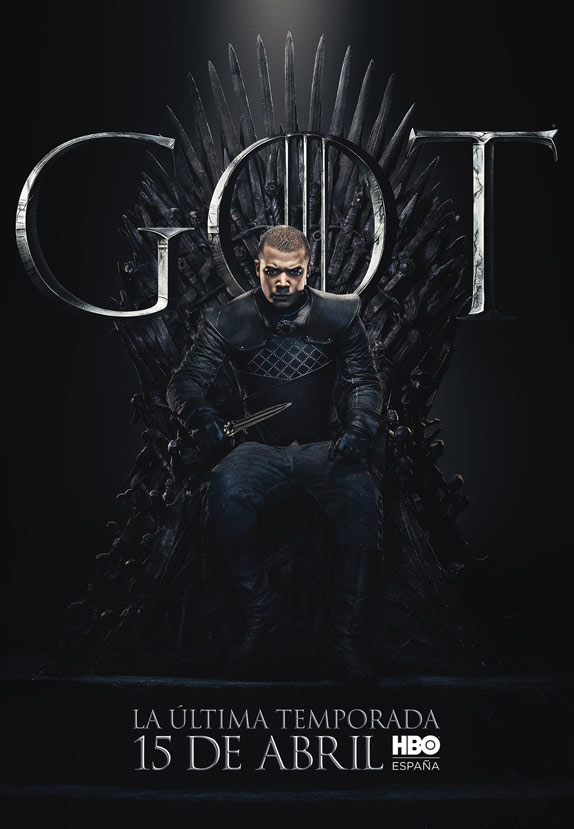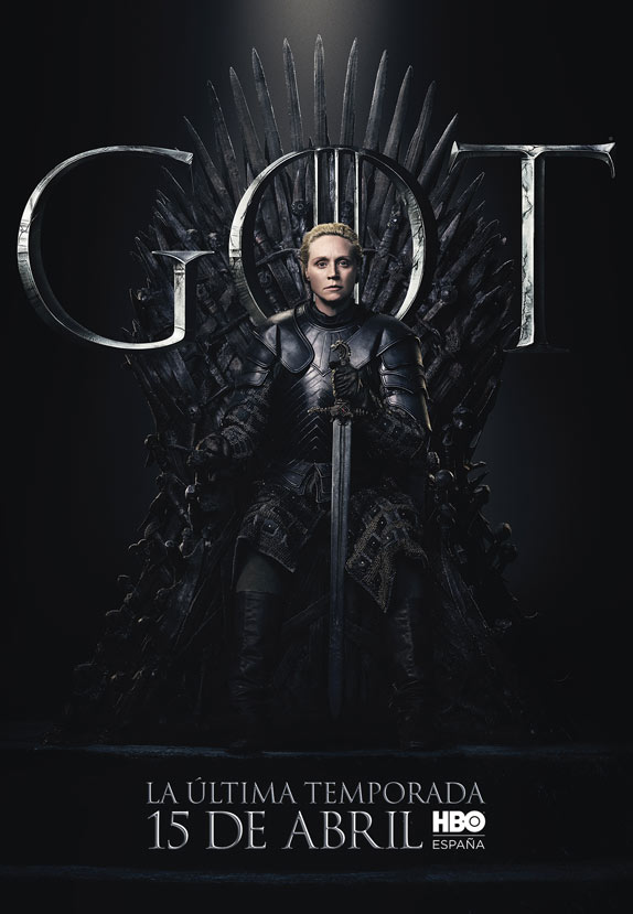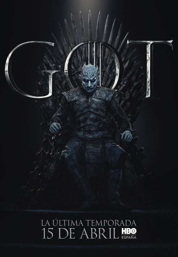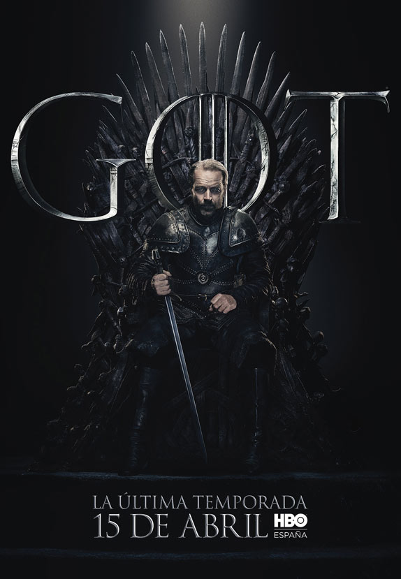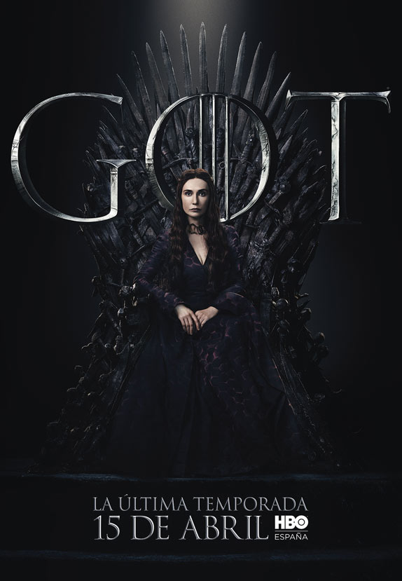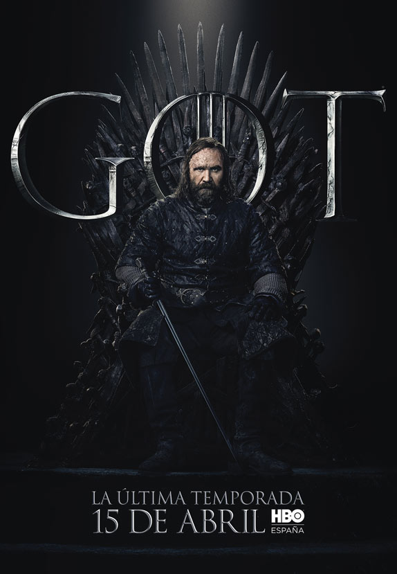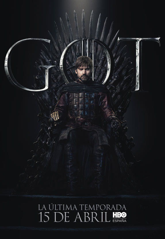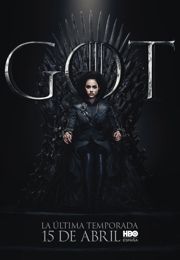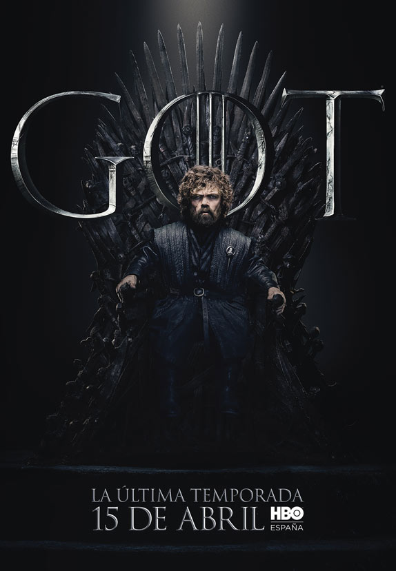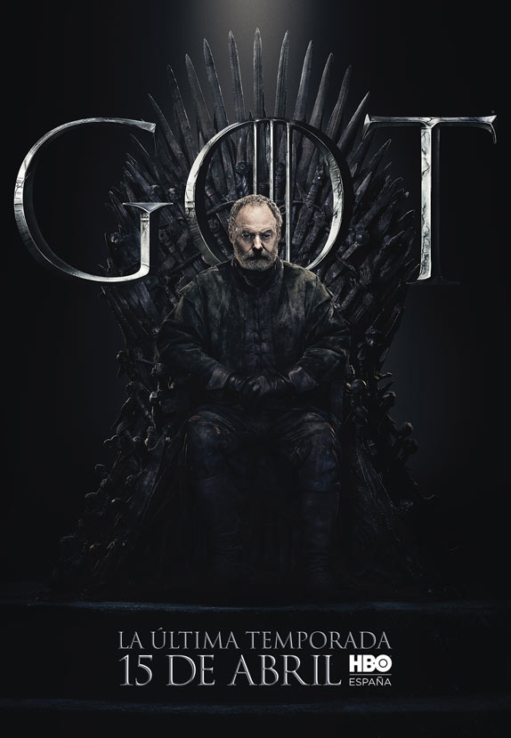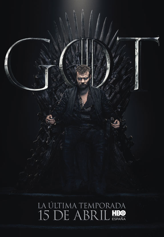 Los carteles están protagonizados por los 20 personajes que aún siguen con vida en la serie y todos ellos aparecen sentados en el Trono de Hierro. Curiosamente, no deja de resultar un poco paradójico que el trono más ansiado de Poniente tenga tanto protagonismo en el arte de la última temporada, puesto que, al fin y al cabo, tras años preguntándonos quién acabaría gobernando los Siete Reinos, quizá nunca había importado tan poco.