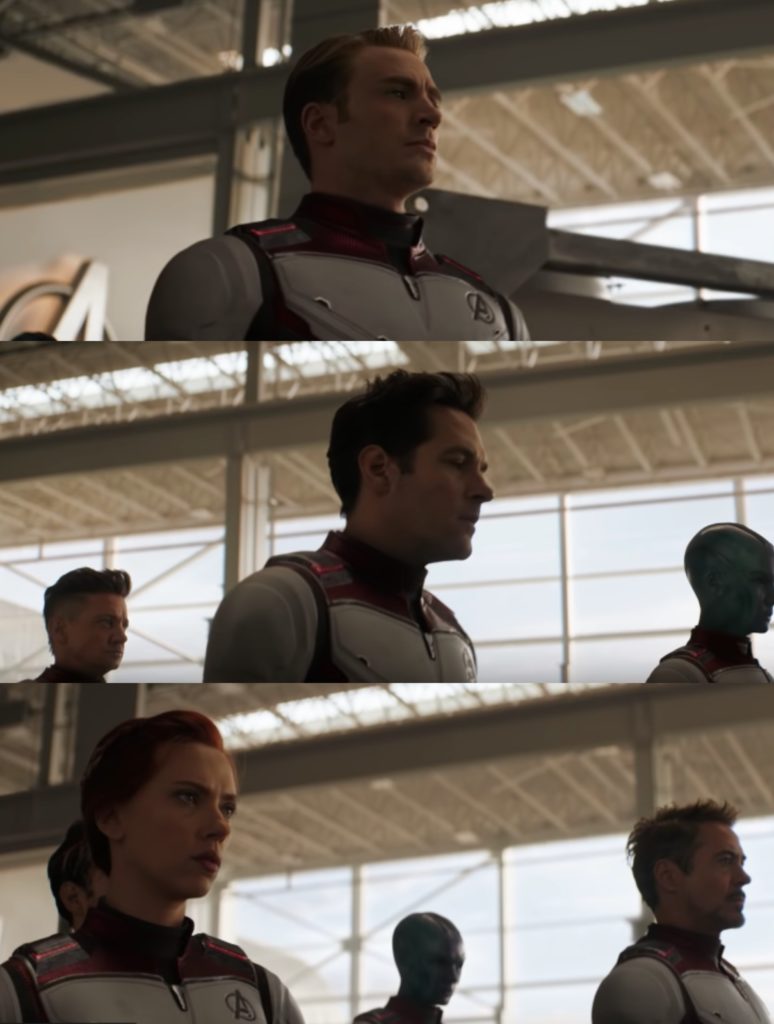 Si has visto el tráiler, hay una escena en la que vemos a Capitán América (Chris Evans), Viuda Negra (Scarlett Johansson), Ojo de Halcón (Jeremy Renner), Thor (Chris Hemsworth) y Tony Stark (Robert Downey Jr.), entre otros, con un traje nunca visto hasta el momento.