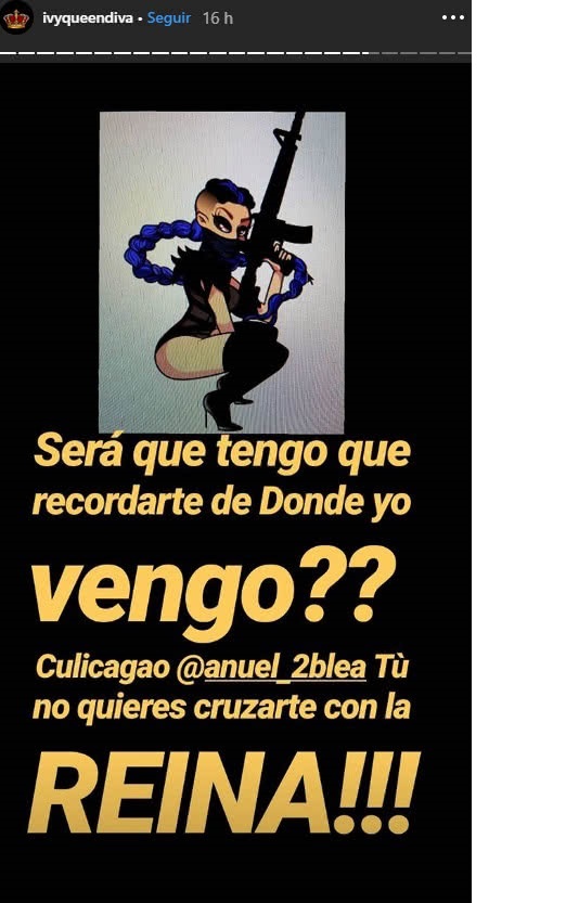 “¿Será que tengo que recordarte de dónde vengo yo? ¡Culicagao @anuel_2blea Tú no quieres cruzarte con la REINA!”, le escribió Ivy al cantante. Mientras que miles de fanáticos apoyaron a Queen nombrando los éxitos que le harían merecedora de ese título.