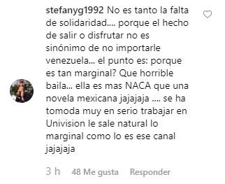 Algunos usuarios destacaron una «falta de solidaridad» por parte de la Miss Venezuela, luego que en días pasados ofreciera una ayuda alimenticia a su pueblo, Cabimas, estado Zulia, que actualmente vive los embates de repetidos apagones y escasez de alimentos.