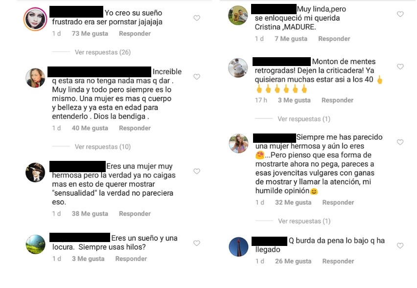 “Yo creo que su sueño frustrado era ser estrella porno”, “increíble que esta señora no tenga nada más que dar”, “ya no caigas en eso de mostrar”, “muy linda, pero se enloqueció” o “pareces esas jovencitas vulgares con ganas de mostrar”, fueron algunas de las críticas por parte de los seguidores de Geithner.