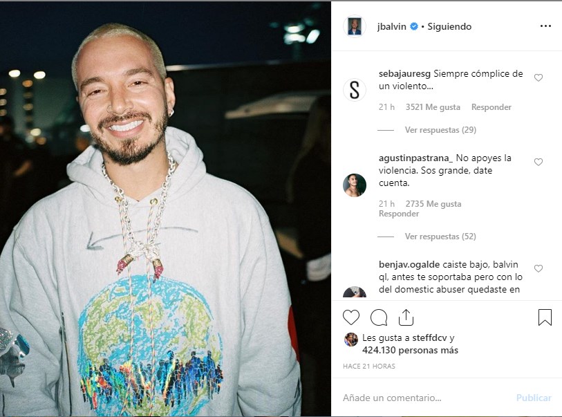 «¡Y con ustedes, el adulador de agresores de MUJERES!. #NiUnaMenos», «que caga más grande te mandaste balvin, piensa en como la pasaba rihanna antes de alabar a un sacowea», son algunos de los miles de mensajes que se pueden ver en la cuenta de Instagram de J Balvin.