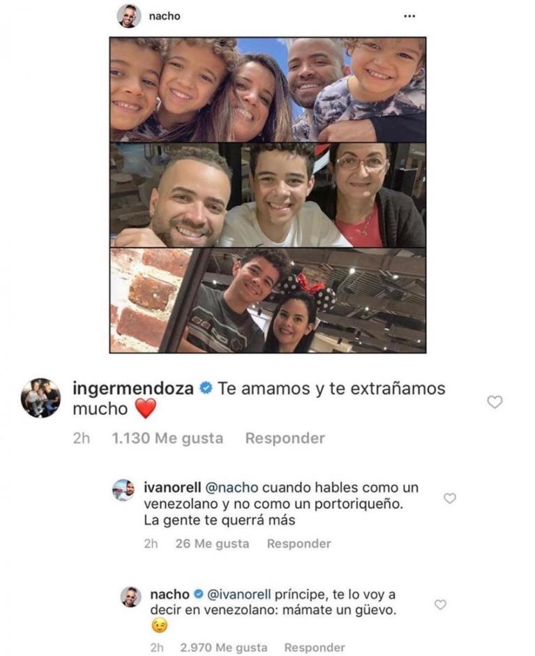 Como es de esperarse, a Nacho no le gustó para nada el comentario despectivo y tóxico del usuario de Instagram, es por esto que decidió darle la respuesta al estilo venezolano.