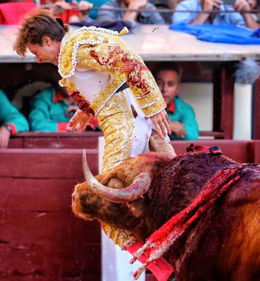 El toro le dejó una herida de 25 centímetros en la zona perianal con trayectoria ascendente. A pesar de la cornada, el torero siguió con la corrida y acabó matando al toro.