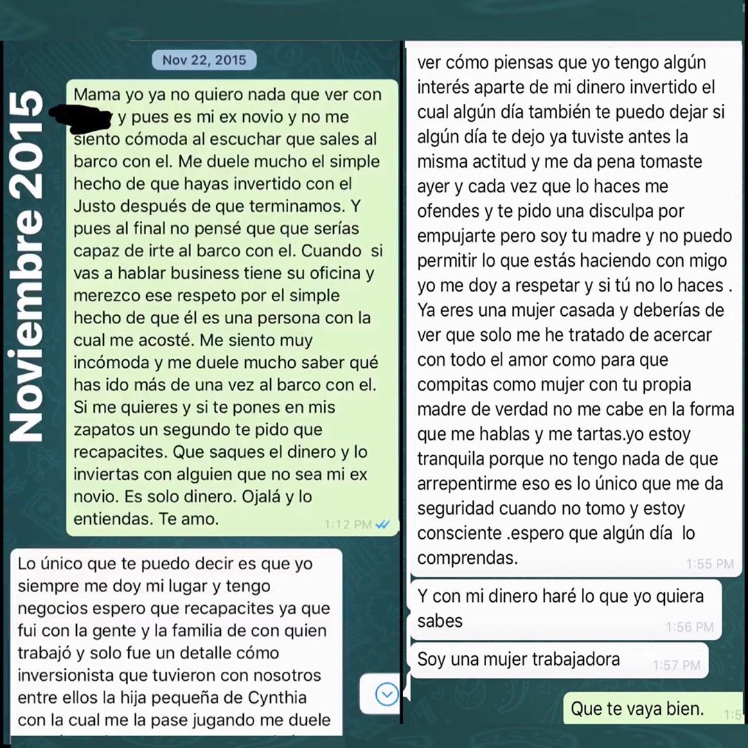 En declaraciones recogidas por el programa Suelta la sopa, publicadas en Instagram, la hija de Guzmán también salió a relucir al comentar «Eres un diablo», refiriéndose a su madre.