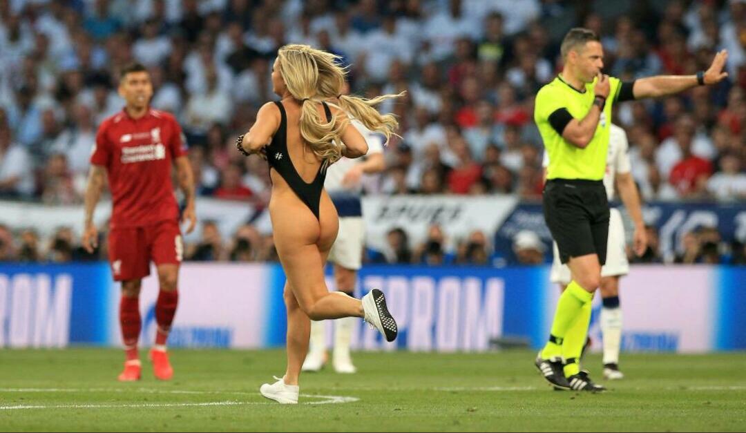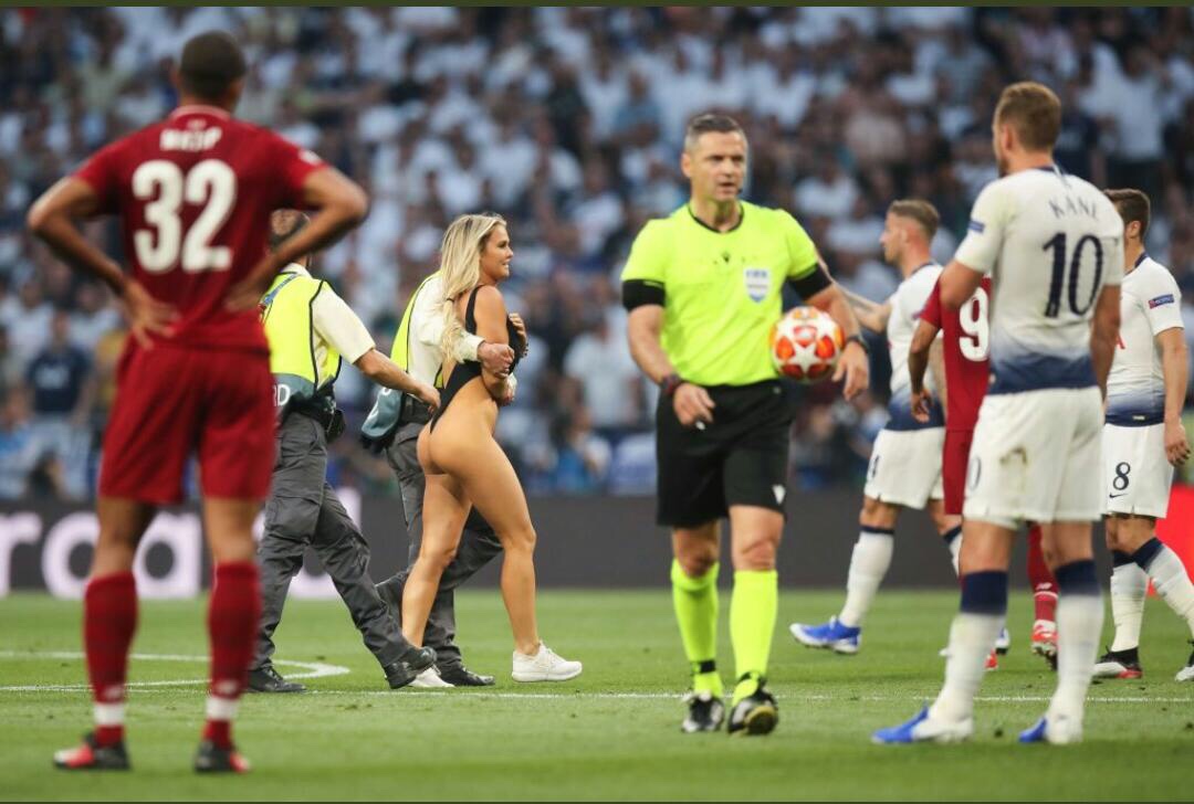 Como ya es costumbre en las finales de la Liga de Campeones y otros eventos deportivos importantes, las protestas de personas ingresan al campo para interrumpir durante un instante el juego también se hizo presente en el Wanda Metropolitano de Madrid.