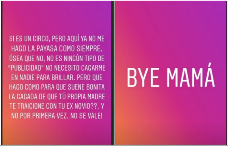 Pero el drama continúa pues Frida también acusó a su madre de tener una relación con su ex novio, Christian Estrada, así lo dio a conocer en su cuenta de Instagram este miércoles y aseguró que no era la primera vez que Guzmán la traicionaba saliendo con un ex novio de ella.
