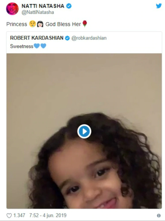 Pero Natasha no se queda atrás, pues retuiteó una publicación de Rob de un video de su hija Dream diciéndole: «Princesa. Que Dios la bendiga».