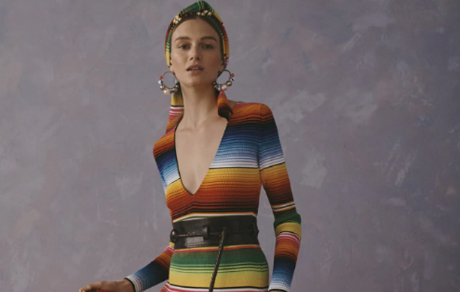 Otro de las piezas que se incluyen en la querella, son las cenefas de colores del sarape de Saltillo (uno de los elementos más representativos de la historia de México), utilizadas en varios de los vestidos de la colección, o los bordados oaxaqueños.
