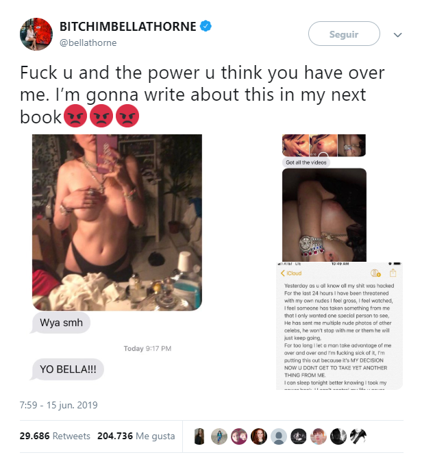 Bella Thorne, la famosa ex chica Disney de la comedia “Shake It Up”, decidió este 15 de junio publicar en su cuenta de twitter fotos íntimas, tras las amenazas de un hacker que intentaba dañar su moral públicamente.