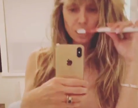 Klum realizó un «boomerang» el cual publicó por su cuenta personal y como de costumbre, sus millones de seguidores enloquecieron por tal revelación de sus atributos. En el clip hizo un topless mientras se cepillaba los dientes frente al espejo y ante un centenar de espectadores 2.0.