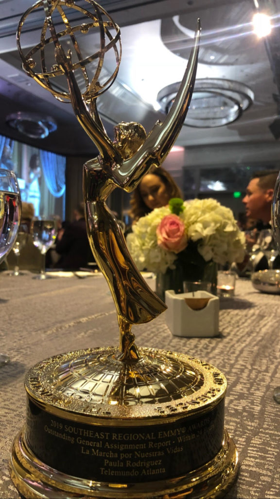 El premio EMMY lo obtuvo por su reportaje “La marcha por nuestras vidas” basado en el control de armas en este país el cual fue transmitido por el canal Telemundo Atlanta.