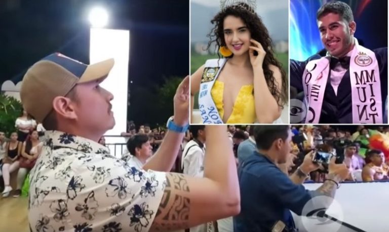 En esas imágenes también se ve que, al final, el marido de Useche se quedó gritándole a Mister Mundo desde un balcón del segundo piso del hotel.